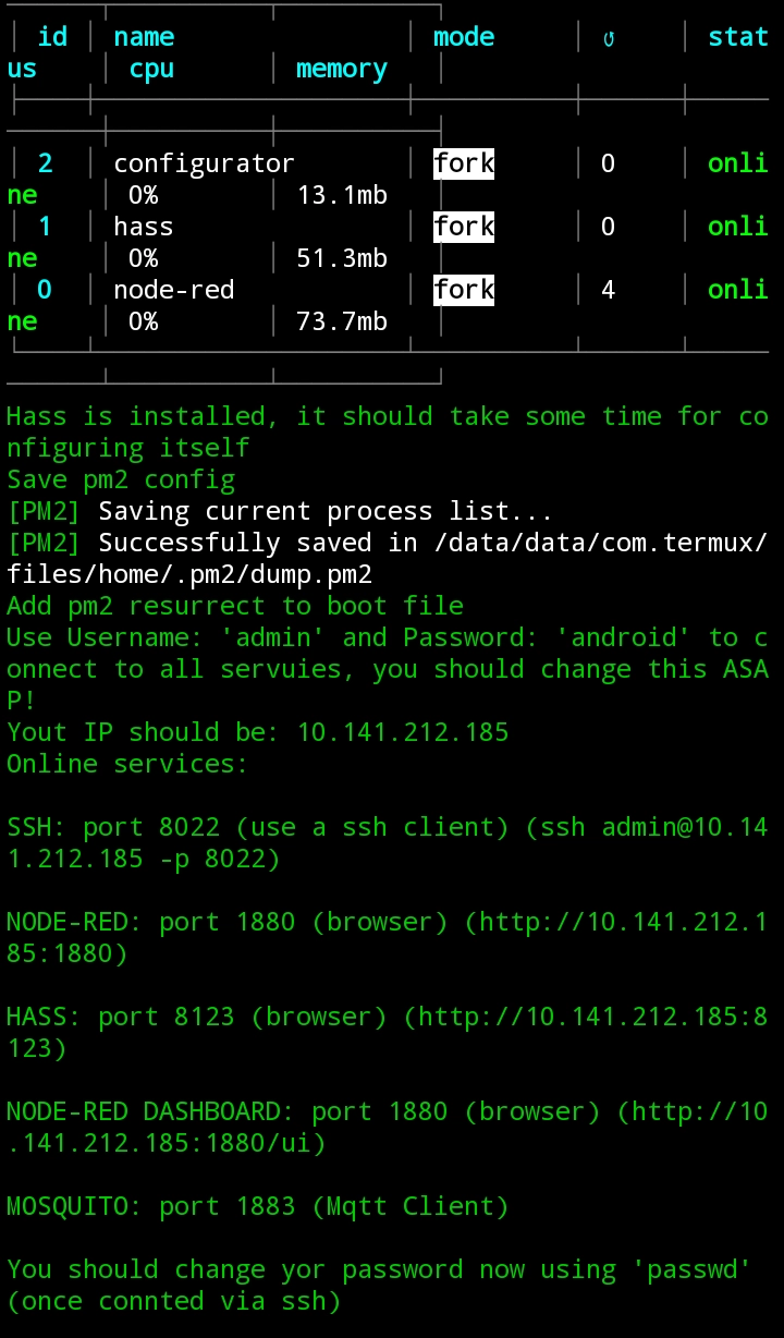 You are now ready to install Home Automation, Node red and Mosquitto on your Android device.